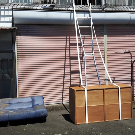 今回は建物事情で、2階の家具家電を内階段で下ろすことが不可能だったため、吊り下げ作業も行いました。