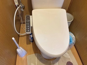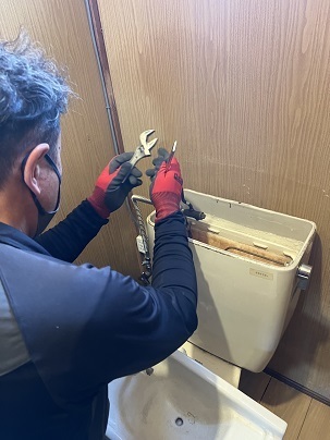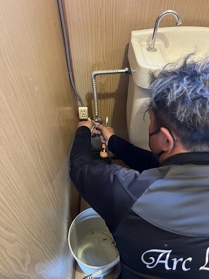 ウォシュレットを取り外す際、最初に設置を行った業者によってトイレタンクの配管が一部改造されており、通常の取り外しが難しい状態となっていました。