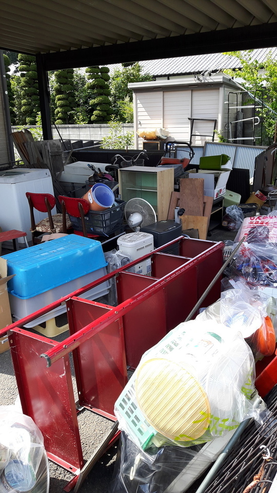 ご実家のご両親が他界され、お身内・ご親族で出来るところはお片付け頂いており、外に運び出されておりました。車庫に運んでみたものの、思いのほか量が多く屋内・屋外も含めお片付けをして頂きたいとのご依頼でした。