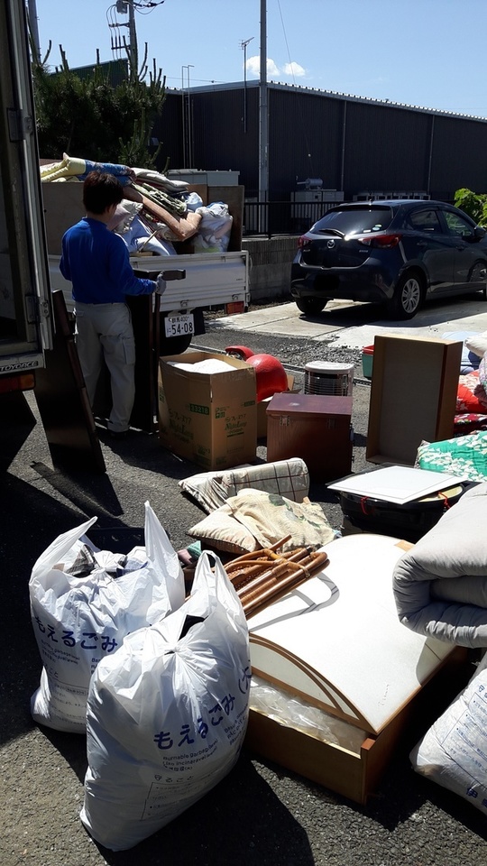 お身内・ご親族の方が手掛けられた「あたたかい遺品整理」であったと思います。故人を偲ぶご遺品はお身内で整理され、不要になってしまった物は屋外に運び出し後のご依頼でした。遺品整理は案外モノが多かったりしますから、ここからはプロである私たちの出番です。