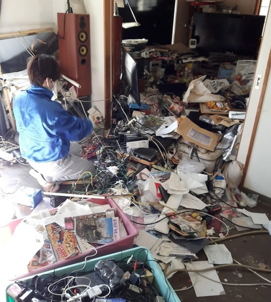 依頼者の探し物や遺品、貴重品を分別作業の中から発見したり、小型トラック・中型トラックで廃棄物を運搬することもできる女性担当者です。